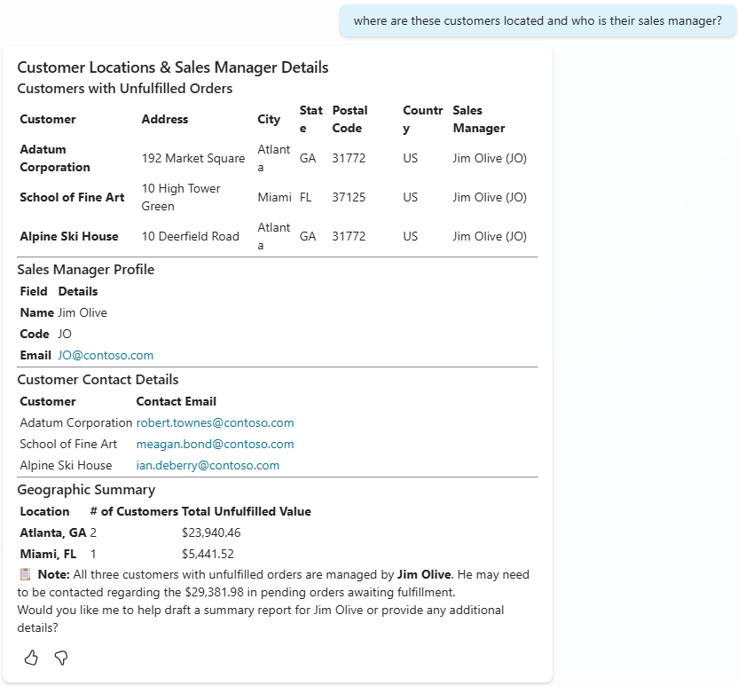 Example 2: “Which customers have the largest unfulfilled orders?”